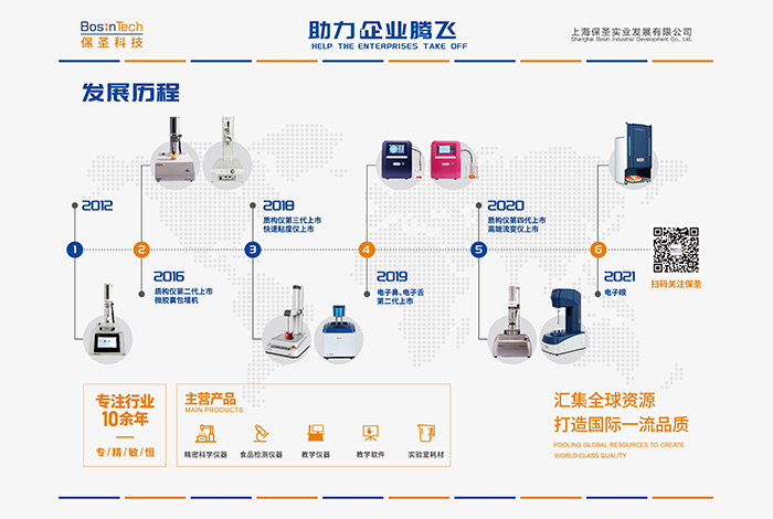 主要產品有:流變儀、質構儀(物性測試儀)、電子鼻、電子舌、電子眼,快速粘度儀,GC-O, 嗅聞儀,整體感官實驗室,感官分析軟件等。保圣產品堅持高品質,因此贏得了良好的口碑、加上優質的服務使得公司產品暢銷國內各大高校、研究所、食品、藥品企業。 并獲得了高度肯定。